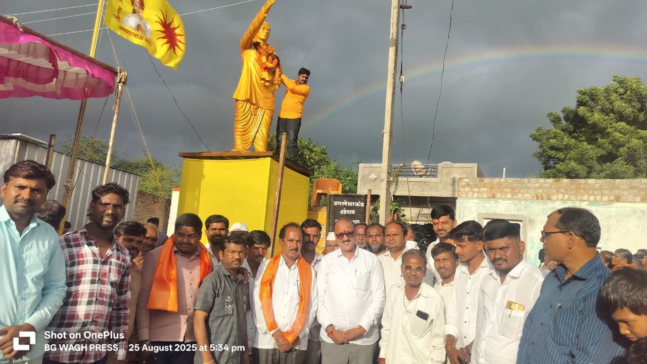वैजापूर : तालुक्यातील दहेगाव येथे उभारण्यात आलेल्या लोकशाहीर अण्णाभाऊ साठे यांच्या पूर्णकृती पुतळ्याचे अनावर मंगळवार, 26 ऑगस्ट रोजी माजी नगराध्यक्ष डॉ दिनेश परदेशी यांच्या हस्ते करण्यात आले.