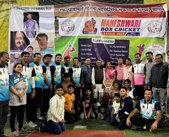 जालना : स्व. धोंडाबाई तोतला बहुउद्देशीय सेवाभावी संस्था जालनाच्यावतीने जुन्या औद्योगिक वसाहतीतील केनिया टर्फवर चार दिवसीय माहेश्वरी बॉक्स क्रिकेट लीग स्पर्धेत पार पडली. या स्पर्धेत काबरा वॉरियर्स संघ विजेता तर बी प्लस सुरक्षा संघ उपविजेता ठरला आहे.