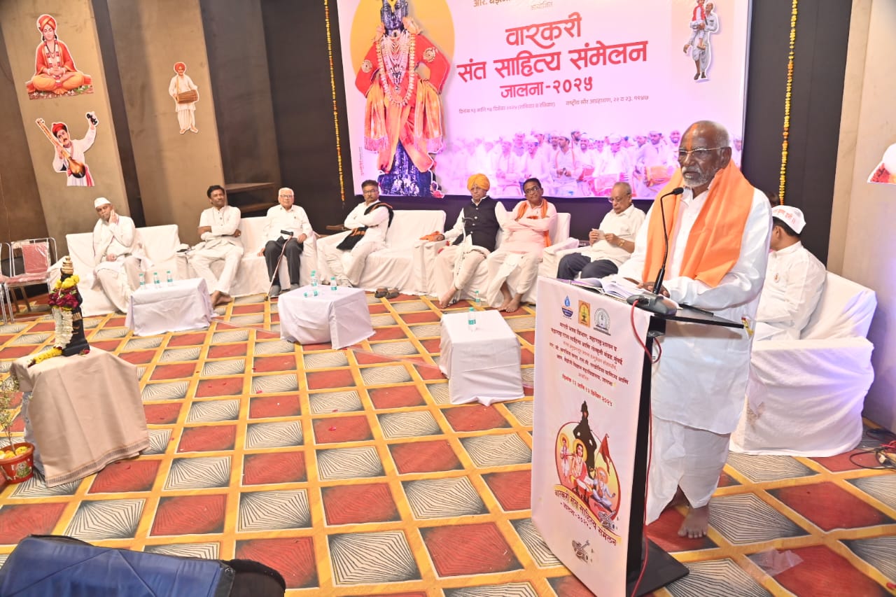 महाराष्ट्र शासनाचा  मराठी भाषा विभाग, महाराष्ट्र राज्य साहित्य आणि संस्कृती मंडळ यांच्या अनुदानातून जालना एज्युकेशन सोसायटीतर्फे जेईएस महाविद्यालयात आयोजित वारकरी संत साहित्य संमेलनाच्या समारोप प्रसंगी ते बोलत होते.  यावेळी अध्यक्षस्थानी जालना एज्युकेशन सोसायटीचे अध्यक्ष पुरूषोत्तम बगडिया हे होते. हभप प्रमोद महाराज जगताप हे प्रमुख पाहुणे म्हणून उपस्थित होते. यावेळी विचारपीठावर महाराष्ट्र राज्य साहित्य आणि संस्कृती मंडळाचे सदस्य  प्रा. श्रीधर नांदेडकर, जालना एज्युकेशन सोसायटीचे सचिव श्रीनिवास भक्कड,स्वागताध्यक्ष प्राचार्य डॉ. गणेश अग्निहोत्री,कार्यवाह डॉ. यशवंत सोनुने, हभप नाना महाराज पोखरीकर,हभप सोनुने गुरूजी, हभप  अनिरुद्ध महाराज क्षीरसागर आदींची उपस्थिती होती.