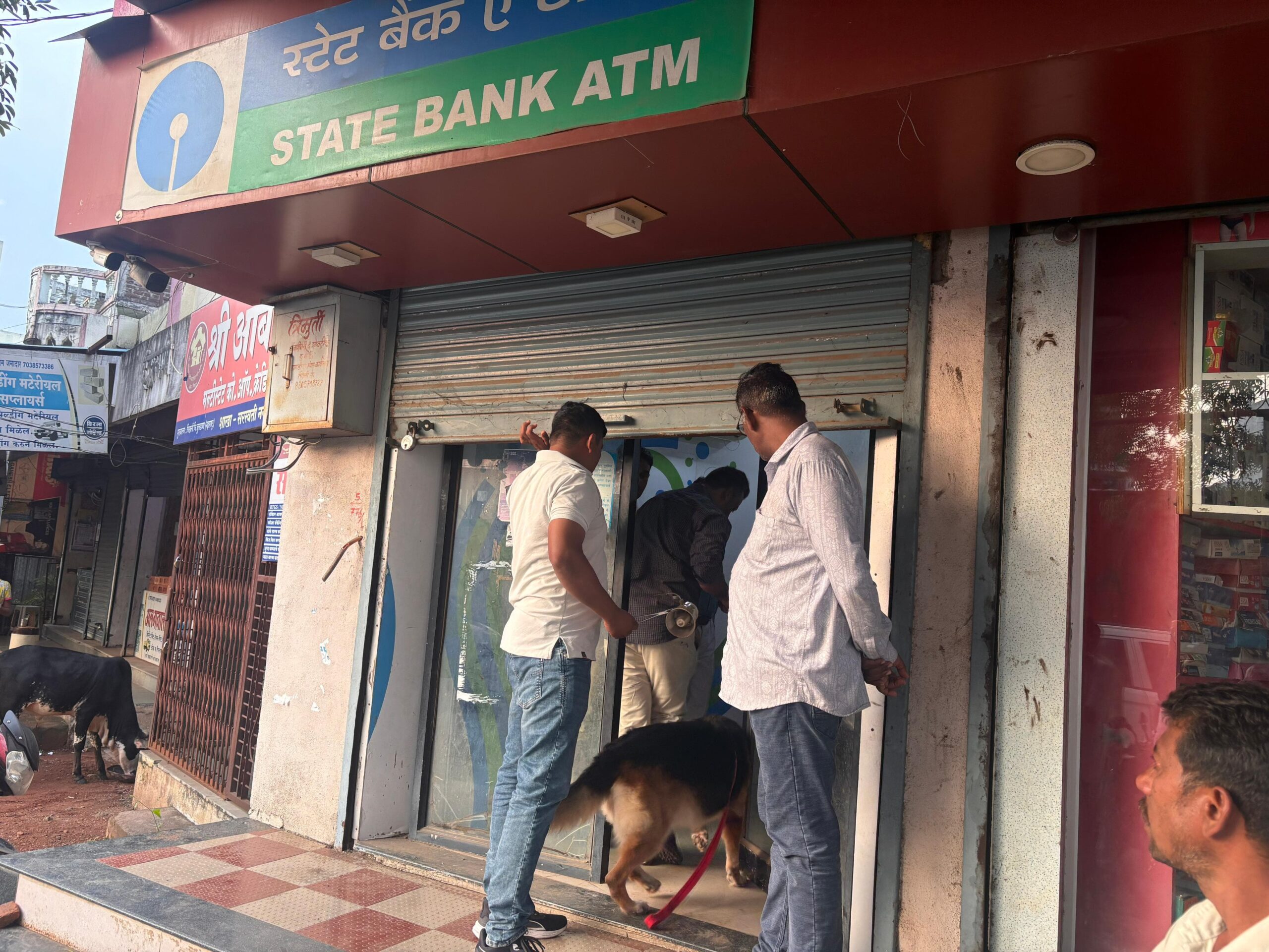दुपारी तीन वाजेच्या सुमारास हा प्रकार उघडकीस आला. यानंतर, परिसरातील नागरिकांनी पोलिसांना माहिती दिली. तत्काळ शहर पोलिसांचे एक पथक घटनास्थळी दाखल झाले होते. श्वान पथक आणि ठसे तंत्रज्ञांचा वापर करीत तपासचक्र वेगाने फिरली. चोरट्यांनी अत्यंत चालाखीने व खबरदारी घेऊन ही धाडसी चोरी केल्याचे म्हटले जात आहे. एटीएममधील शिल्लक रक्कम आणि ग्राहकांनी काढलेली रक्कम याची तपासणी बँक अधिकाऱ्यांनी केली. पोलिसांनी यासंदर्भात अधिकृत माहिती दिली नसली तरी रोख रक्कमेसह तब्बल दहा लाखांचा मुद्देमाल लंपास केल्याचे बोलले जात आहे. घटनेमुळे संपूर्ण शहरात खळबळ उडाली असून, दिवसेंदिवस नागरी वस्तीत चोरट्यांचा धुमाकूळ वाढत असल्याने कठोर कारवाई करण्याची मागणी होत आहे. वृत्तलेपर्यंत गुन्हा दाखल करण्याची प्रक्रिया सुरू होती.